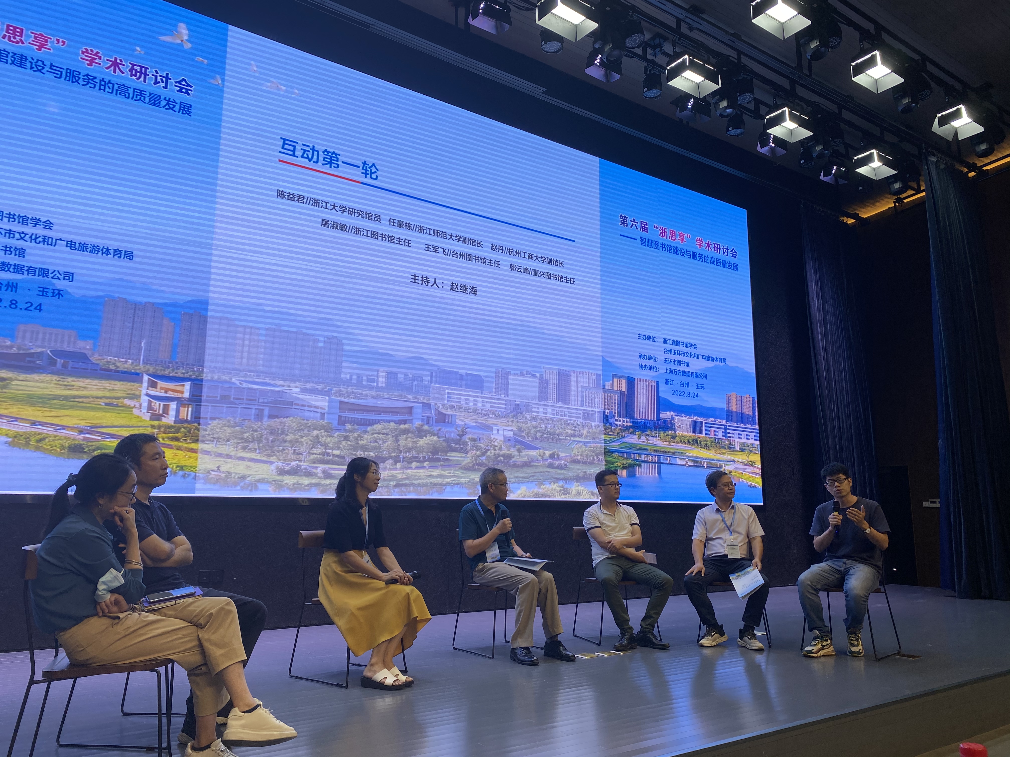 8月24日,由浙江省图书馆学会、台州玉环市文化和广电旅游体育局主办,玉环市图书馆承办,上海万方数据有限公司协办的第六届“浙思享”学术研讨会在玉环召开。本届研讨会的主题为“智慧图书馆建设与服务的高质量发展”,以4场主旨报告和互动交流的形式展开。来自全省公共图书馆、高校图书馆界的40余位专家学者与会。