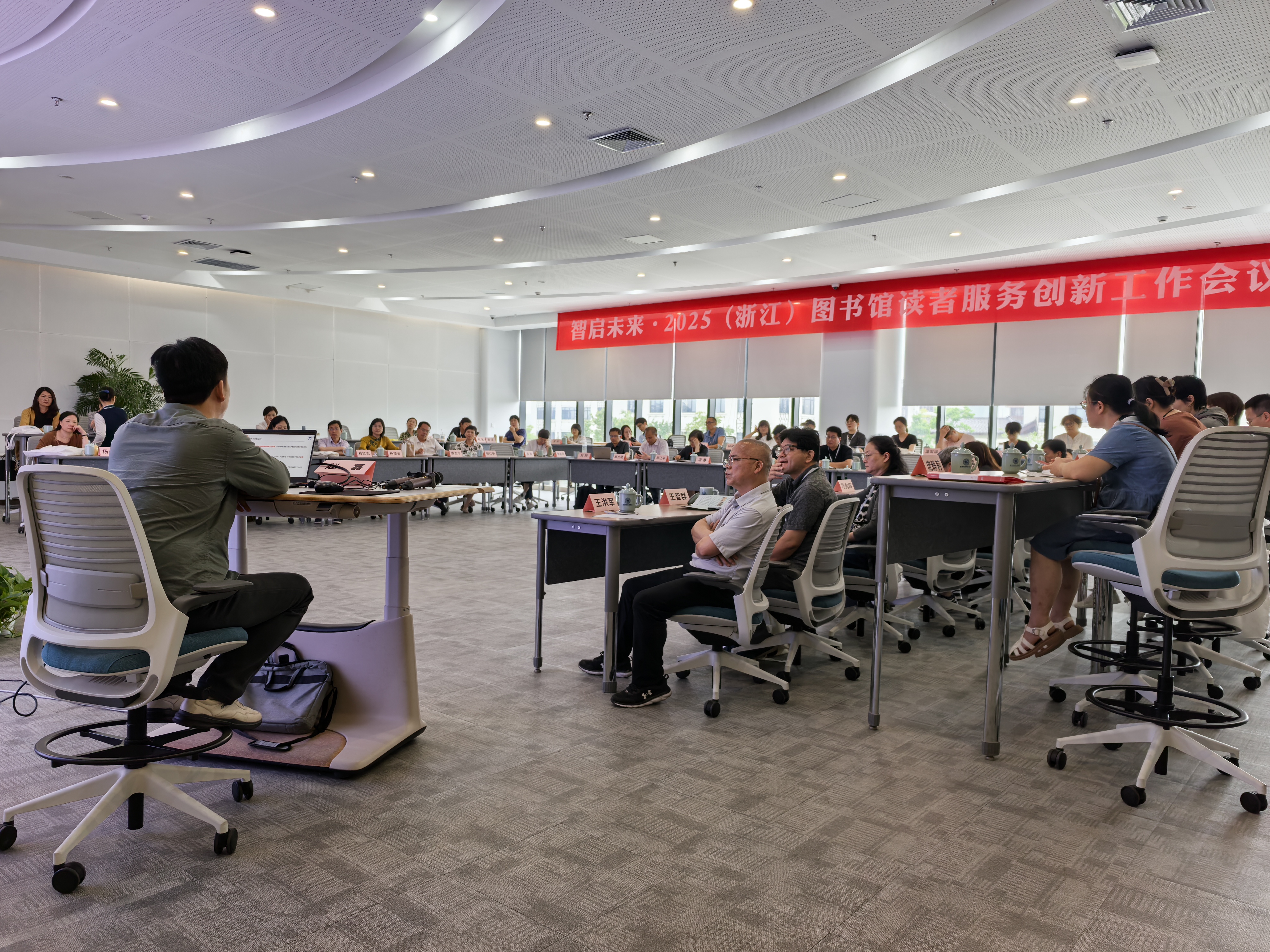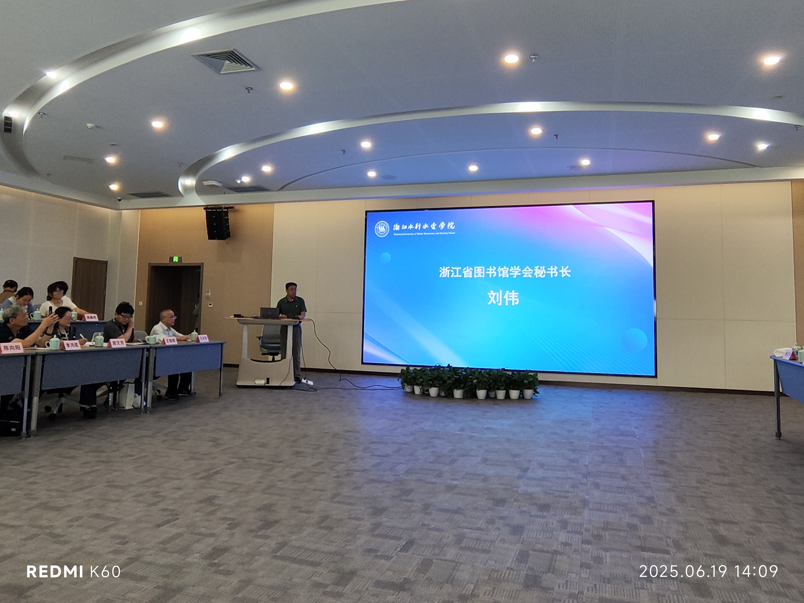 2025年6月19 -20日,由浙江省图书馆学会、浙江省高校图书情报工作指导委员会联合主办的“智启未来·2025(浙江)图书馆读者服务创新工作会议”在浙江水利水电学院南浔校区图书馆召开。浙江省图书馆学会秘书长刘伟、浙江省高校图书情报工作指导委员会副秘书长郑江平,省图学会用户服务与研究专业组和省高校图工委读者服务专委会委员,以及来自省内30多所高校、公共图书馆的馆长、业务骨干等50余人与会,共同探讨人工智能技术在图书馆服务中的创新应用。省高校图工委读者服务专委会副主任、浙江水利水电学院图书馆负责人王洪军主持了会议。