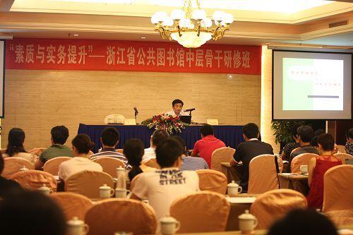 浙江图书馆党委副书记徐洁讲授《在新形势下做好读者服务工作》