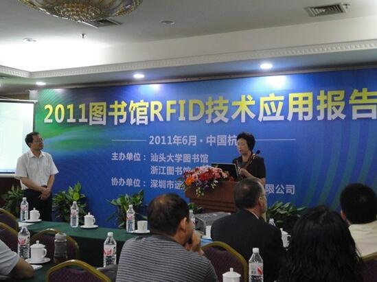 2011年6月15日,“2011图书馆RFID技术应用报告会”在浙江杭州隆重召开,来自国家图书馆、浙江图书馆、深圳图书馆等22家公共图书馆和北京大学、同济大学、汕头大学图书馆等27家高校图书馆共78名代表出席会议。本次会议由浙江图书馆刘晓清和汕头大学图书馆杨明华两位馆长主持。