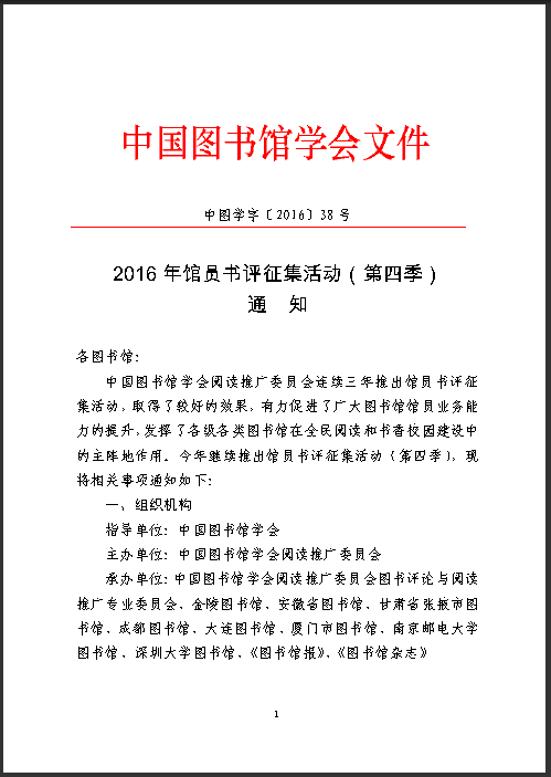 中国图书馆学会关于申报2016中国图书馆学会年会学术活动的通知