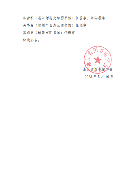 关于浙江省图书馆学会第九届理事会部分成员变更的公告