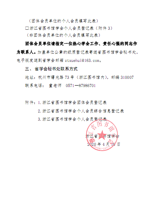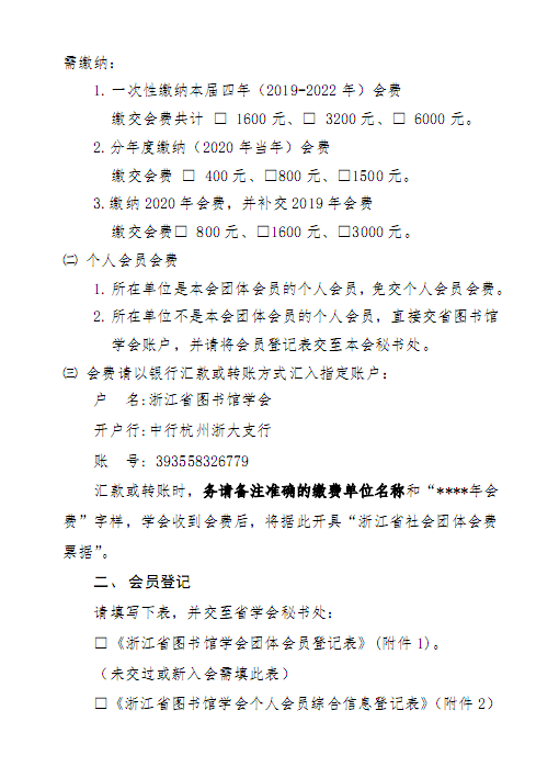 关于浙江省图书馆学会2020年会费收取及会员登记的通知