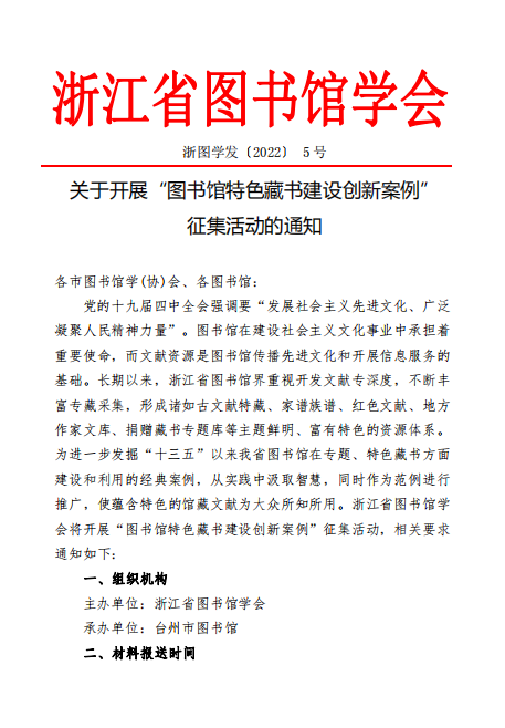 关于开展“图书馆特色藏书建设创新案例”征集活动的通知