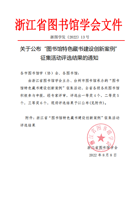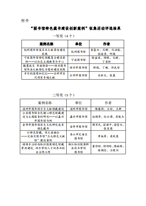 附件:关于公布 “图书馆特色藏书建设创新案例”征集活动评选结果的通知