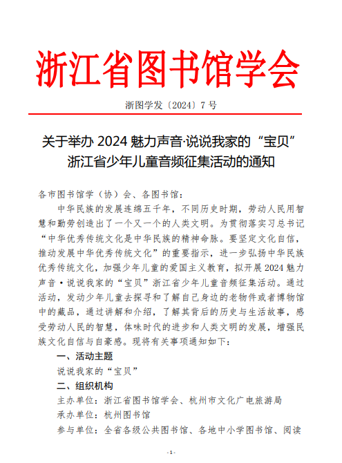 关于举办2024魅力声音·说说我家的“宝贝”浙江省少年儿童音频征集活动的通知