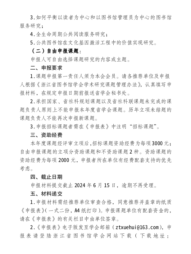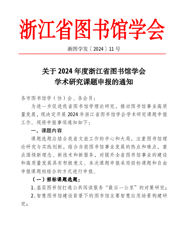 关于2024年度浙江省图书馆学会学术研究课题申报的通知