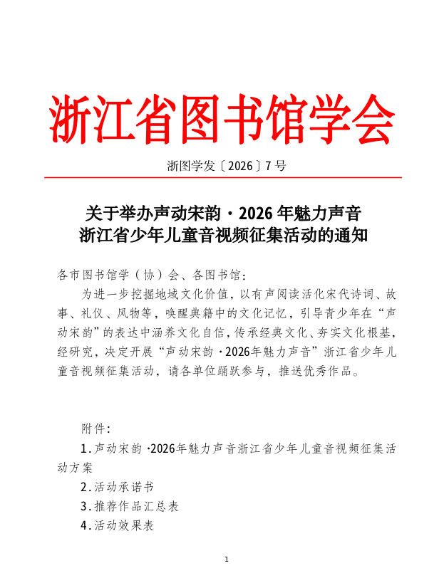 关于举办声动宋韵·2026年魅力声音浙江省少年儿童音视频征集活动的通知