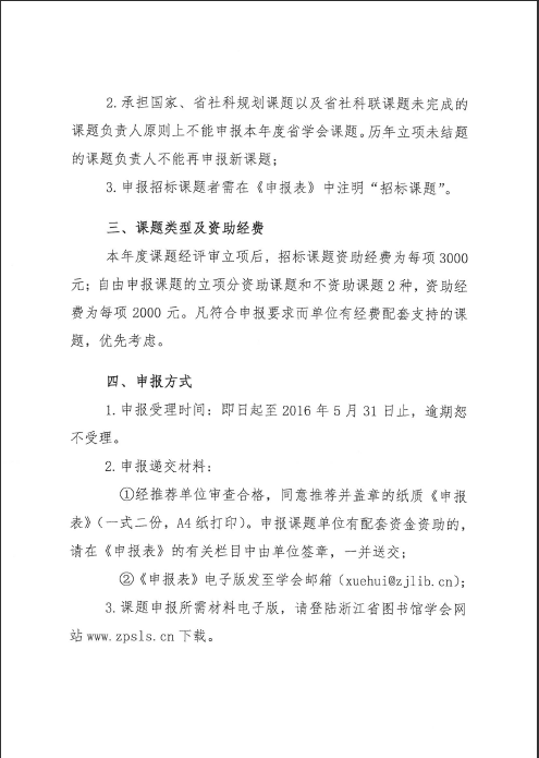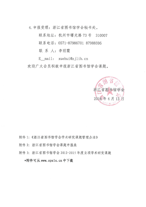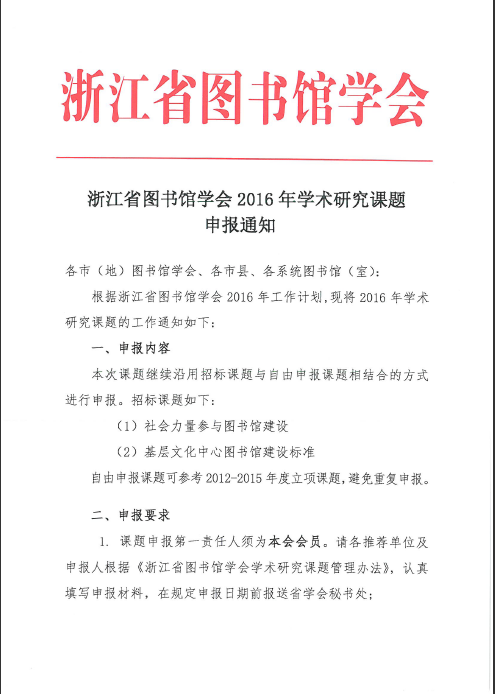 关于申报浙江省图书馆学会2016年学术研究课题的通知
