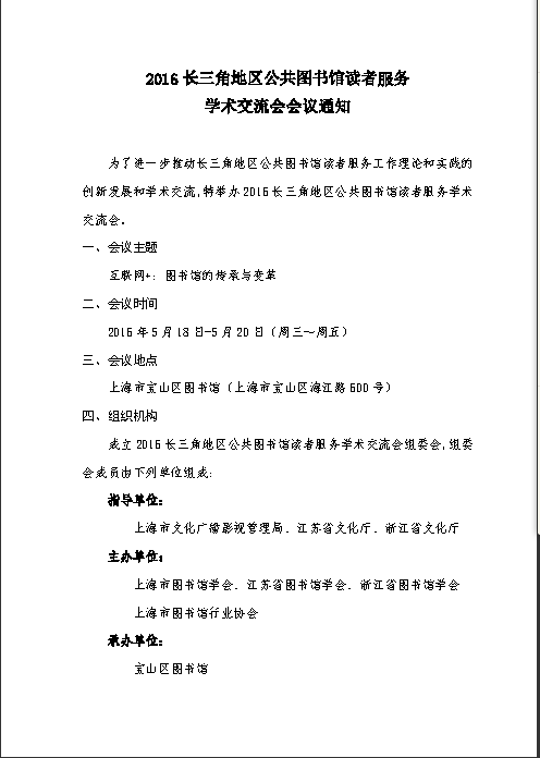 2016长三角地区公共图书馆读者服务学术交流会通知