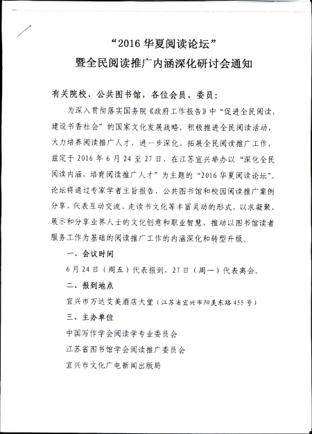 “2016华夏阅读论坛”暨全民阅读推广内涵深化研讨会通知