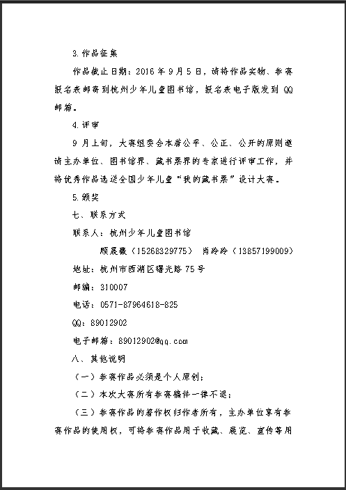 2016年浙江省少年儿童“我的藏书票”设计大赛的通知