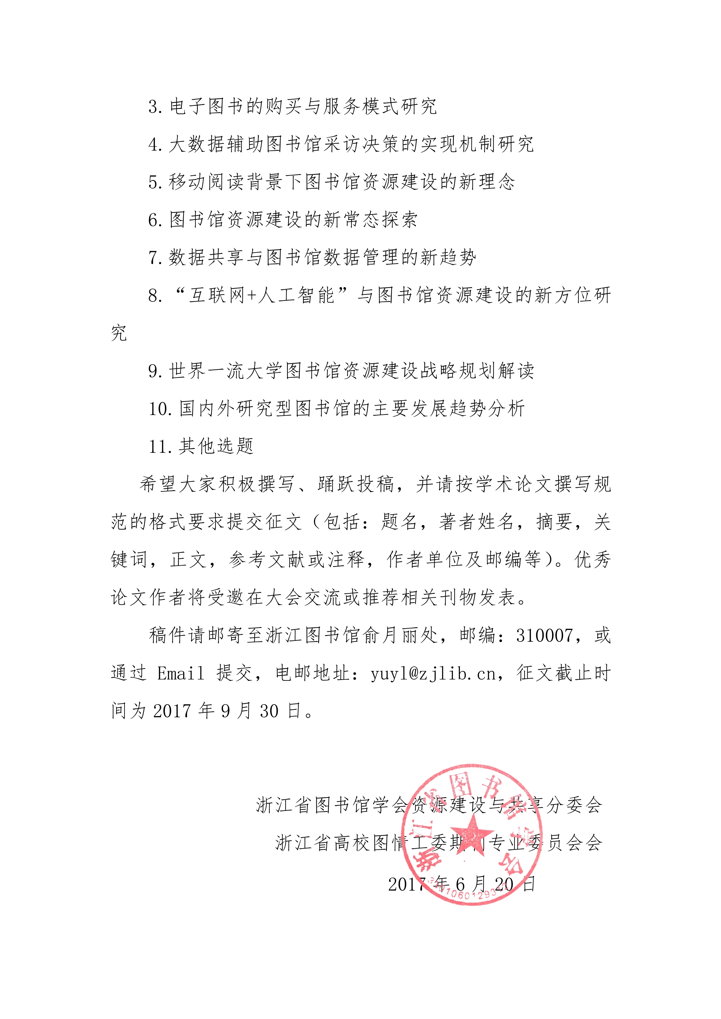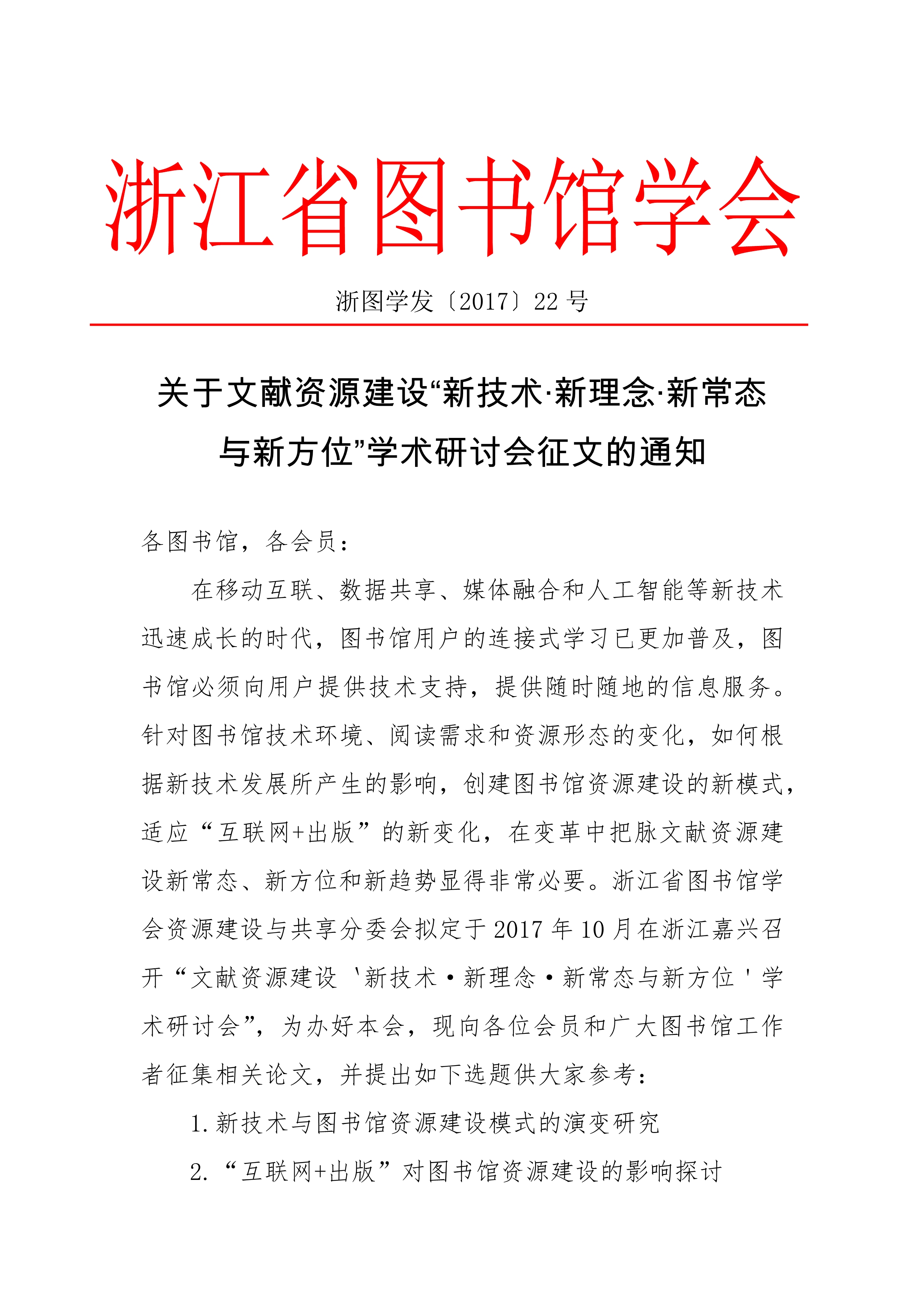 关于文献资源建设“新技术•新理念•新常态与新方位”学术研讨会征文的通知