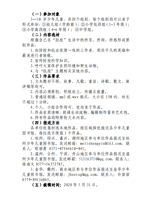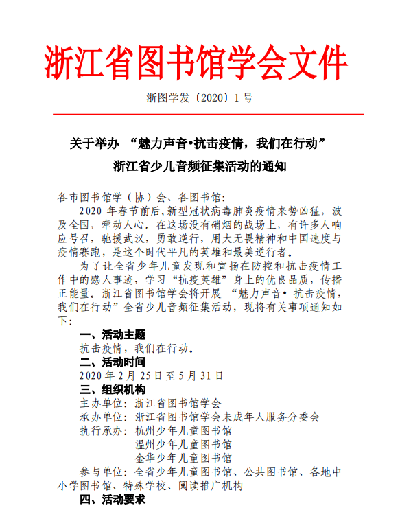 关于举办“魅力声音•抗击疫情,我们在行动”浙江省少儿音频征集活动的的通知(点击下载)