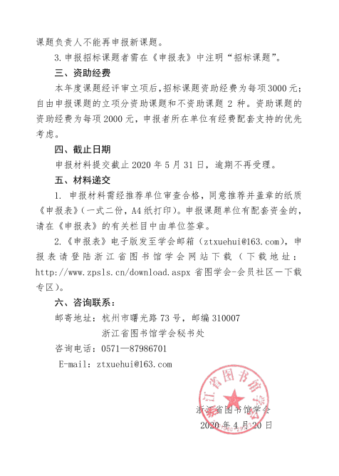 关于2020年度浙江省图书馆学会学术研究课题申报的通知