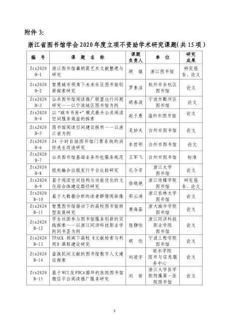 关于浙江省图书馆学会 2020年度学术研究课题立项的公示