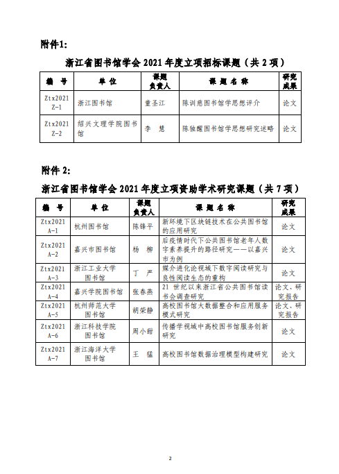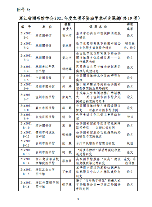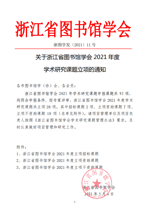 附件:〔2021〕11号关于浙江省图书馆学会2021年度学术研究课题立项的通知