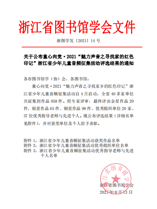 附件1:浙江省少年儿童音频征集活动获奖作品名单