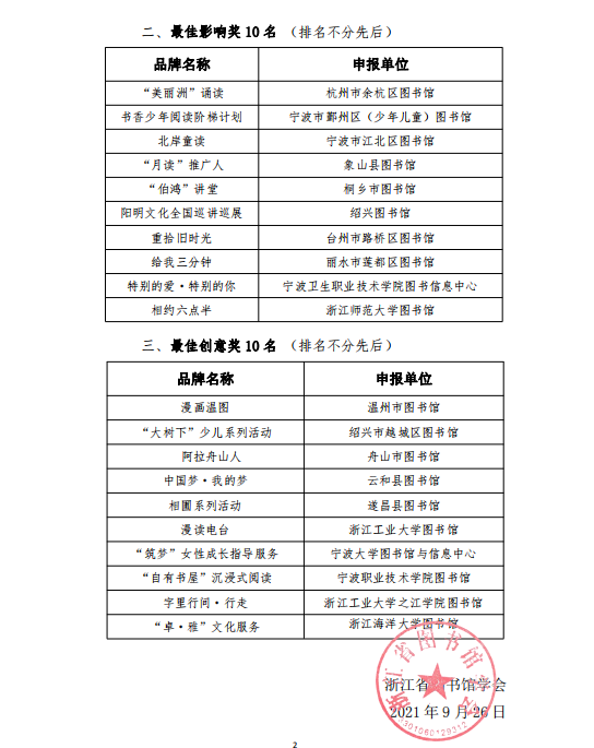 关于浙江省图书馆学会第三届优秀图书馆服务品牌评选结果的公示