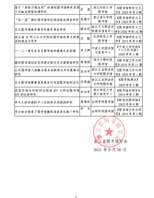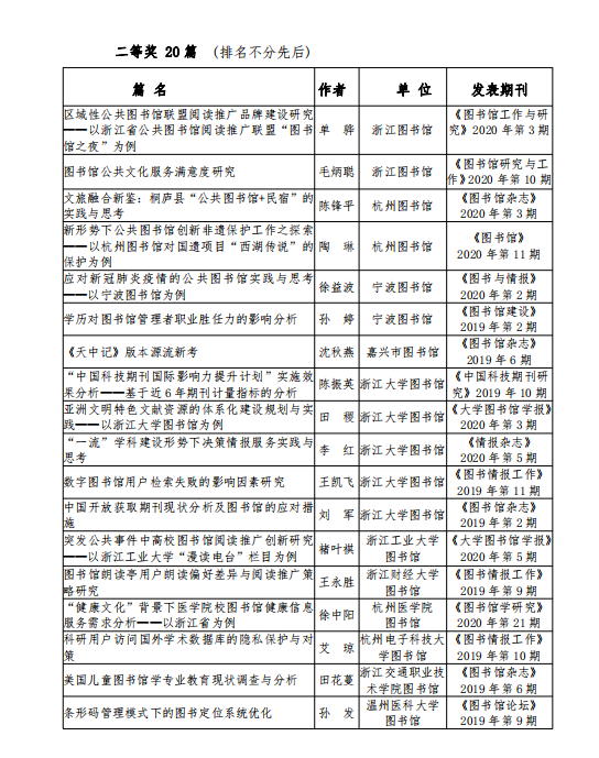 关于公布浙江省图书馆学会第九次优秀论文评奖结果的通知
