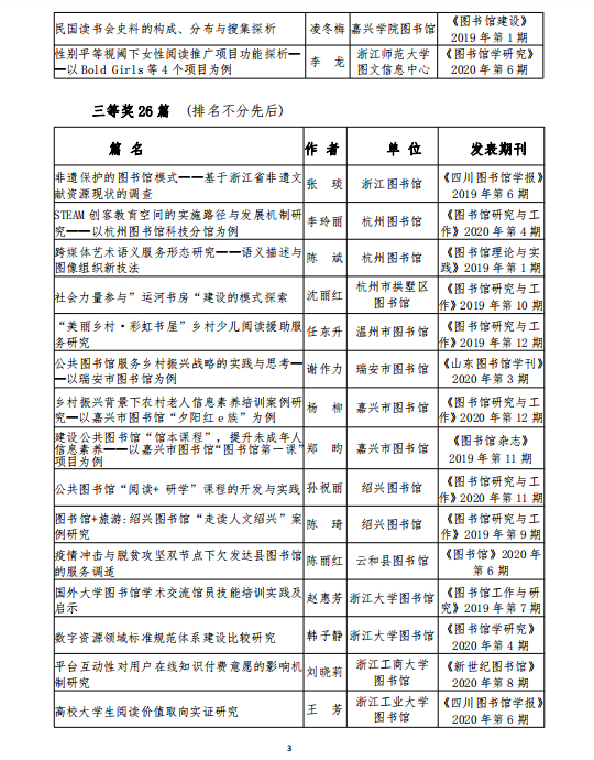 关于公布浙江省图书馆学会第三届“优秀图书馆服务品牌”评选结果的通知